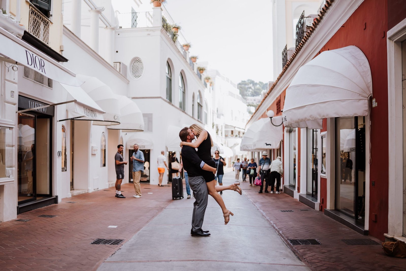 La coppia desiderava fotografie naturali e spontanee, lontane da pose forzate. L’idea era semplice: passeggiare insieme tra i luoghi più iconici di Capri e raccontare la loro storia in modo autentico.