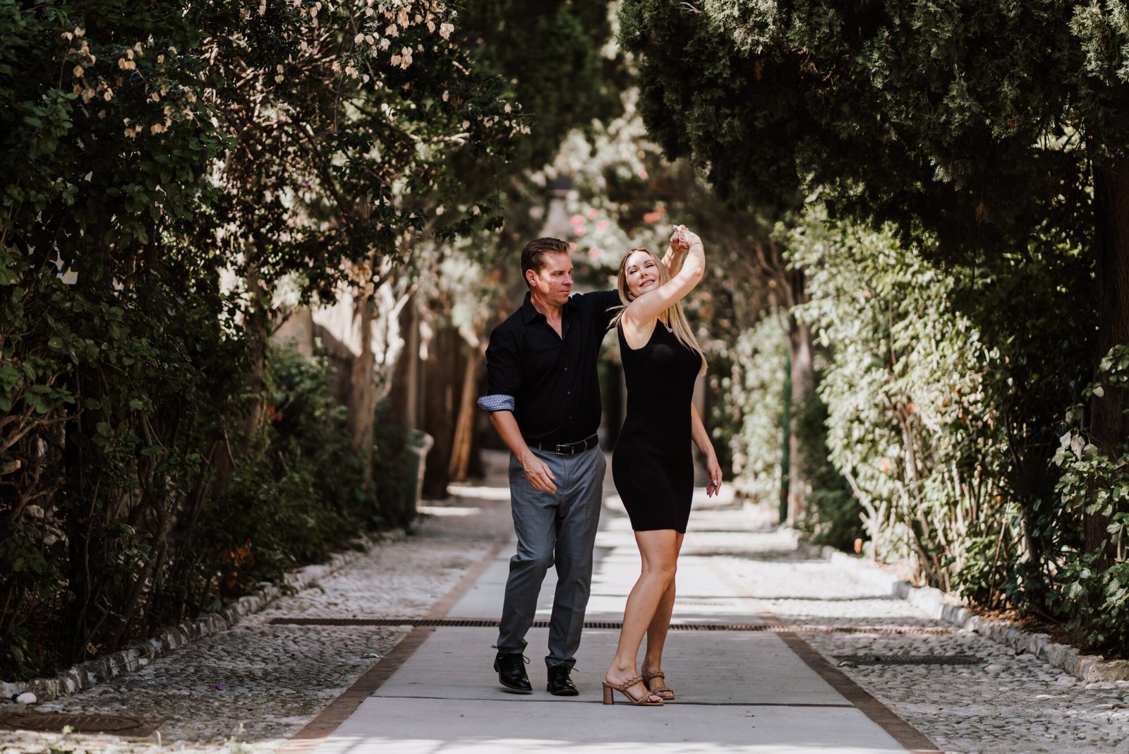 Dopo i giardini, la sessione è proseguita tra le stradine del centro. Le facciate bianche, i dettagli architettonici e gli scorci sul mare rendono ogni angolo perfetto per fotografie spontanee.